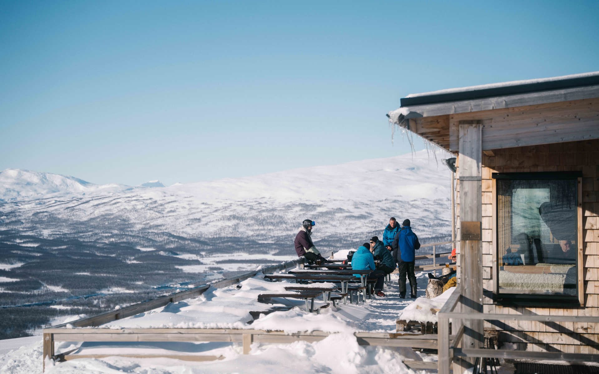 Located in Hemavan, Björk is a mountain-top restaurant and bar offering an elevated dining experience in a stunning fjäll setting. The architecture is noteworthy: perched at the treeline, large windows and design that connects directly to the landscape.